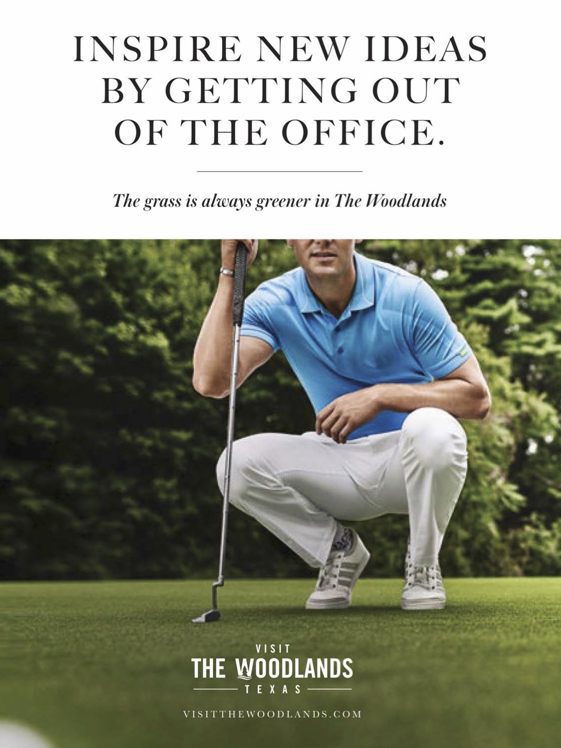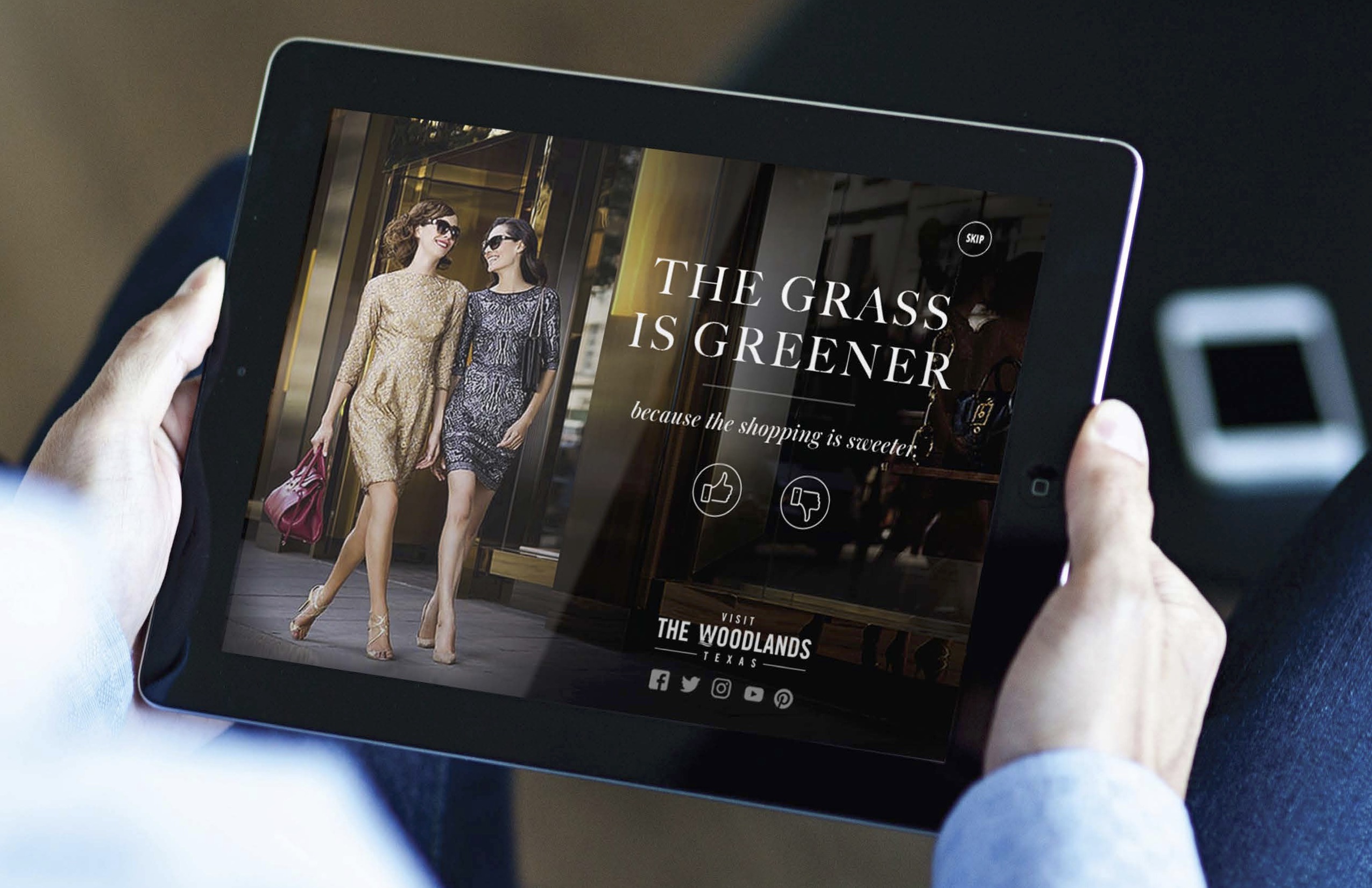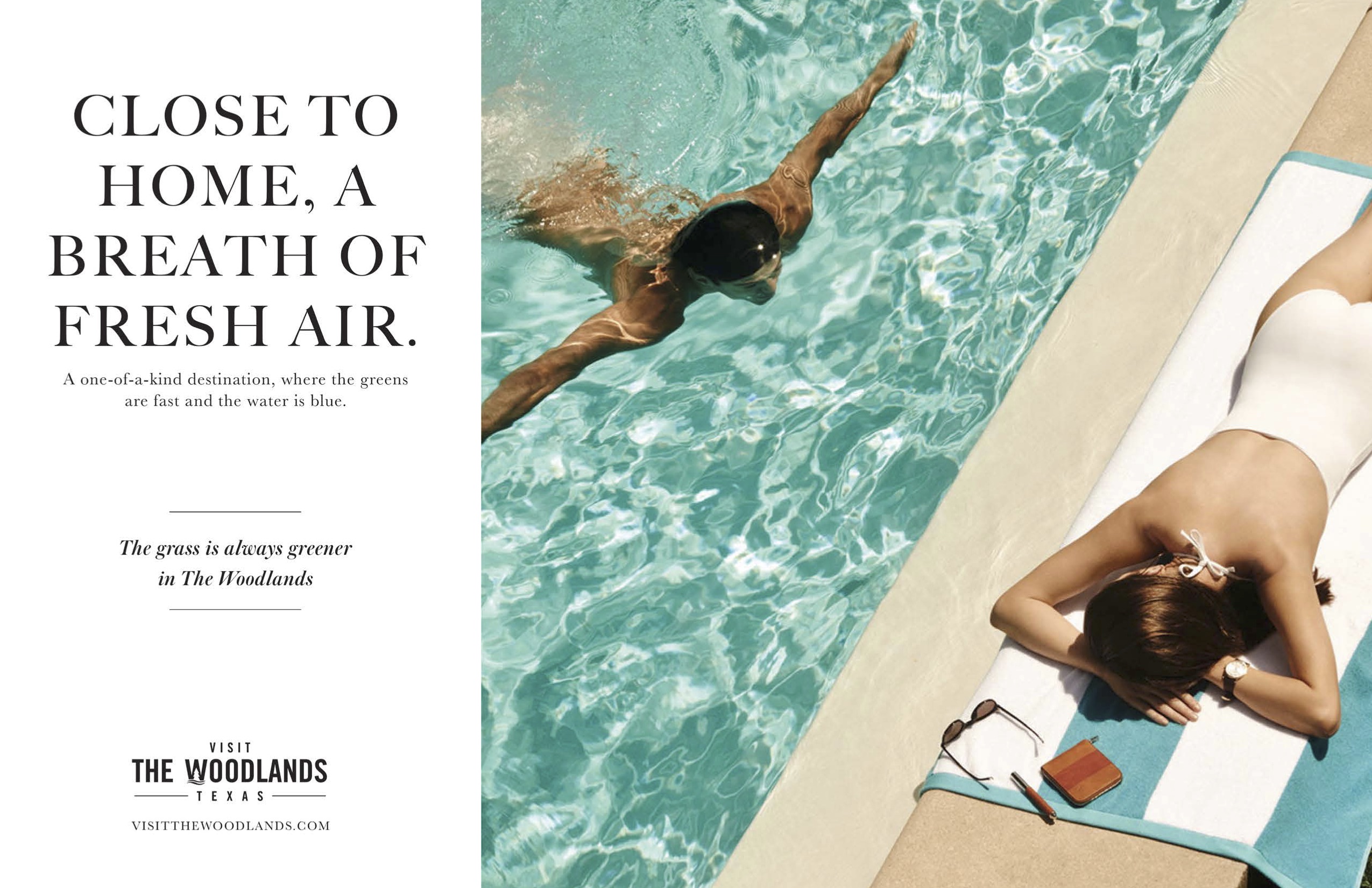 Attracting tourists and business travelers can be a challenge for a planned community like The Woodlands, Texas. After all, it’s specifically built for its residents. But by highlighting the benefits that the township had to offer visitors — elegance, style, high-end amenities, and more — this concept showed what the residents already know: the grass is always greener in The Woodlands.